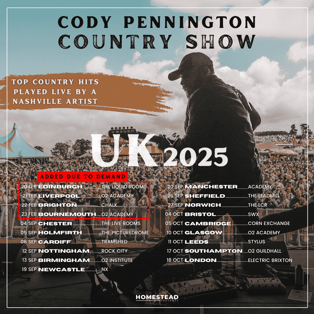 After selling over 50,000 tickets, Nashville artist Cody Pennington brings his country show back to the UK for his third nationwide tour! With hits from Luke Combs, Morgan Wallen, Cody's original music and many more, this show is a perfect event for any country fan!